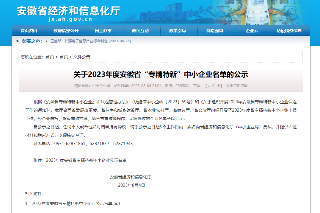 喜報(bào)!環(huán)通公司成功上榜2023年度安徽省 “專(zhuān)精特新”中小企業(yè)名單