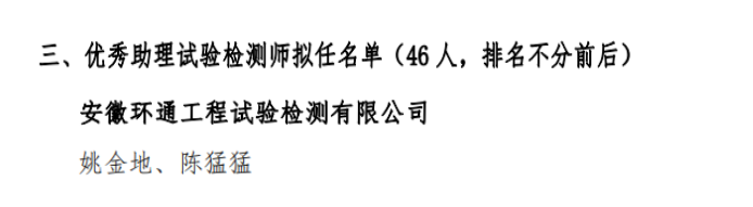 安徽省公路學(xué)會(huì)每年在省內(nèi)評(píng)選一次優(yōu)秀試驗(yàn)檢測(cè)師和優(yōu)秀助理試驗(yàn)檢測(cè)師,旨在表彰公路試驗(yàn)檢測(cè)行業(yè)內(nèi)具有扎實(shí)專業(yè)基礎(chǔ)理論水平,能夠形成行業(yè)示范效應(yīng)的杰出人才,從而鼓勵(lì)更多試驗(yàn)檢測(cè)從業(yè)人員不斷提升綜合素質(zhì),推動(dòng)試驗(yàn)檢測(cè)行業(yè)高質(zhì)量發(fā)展。