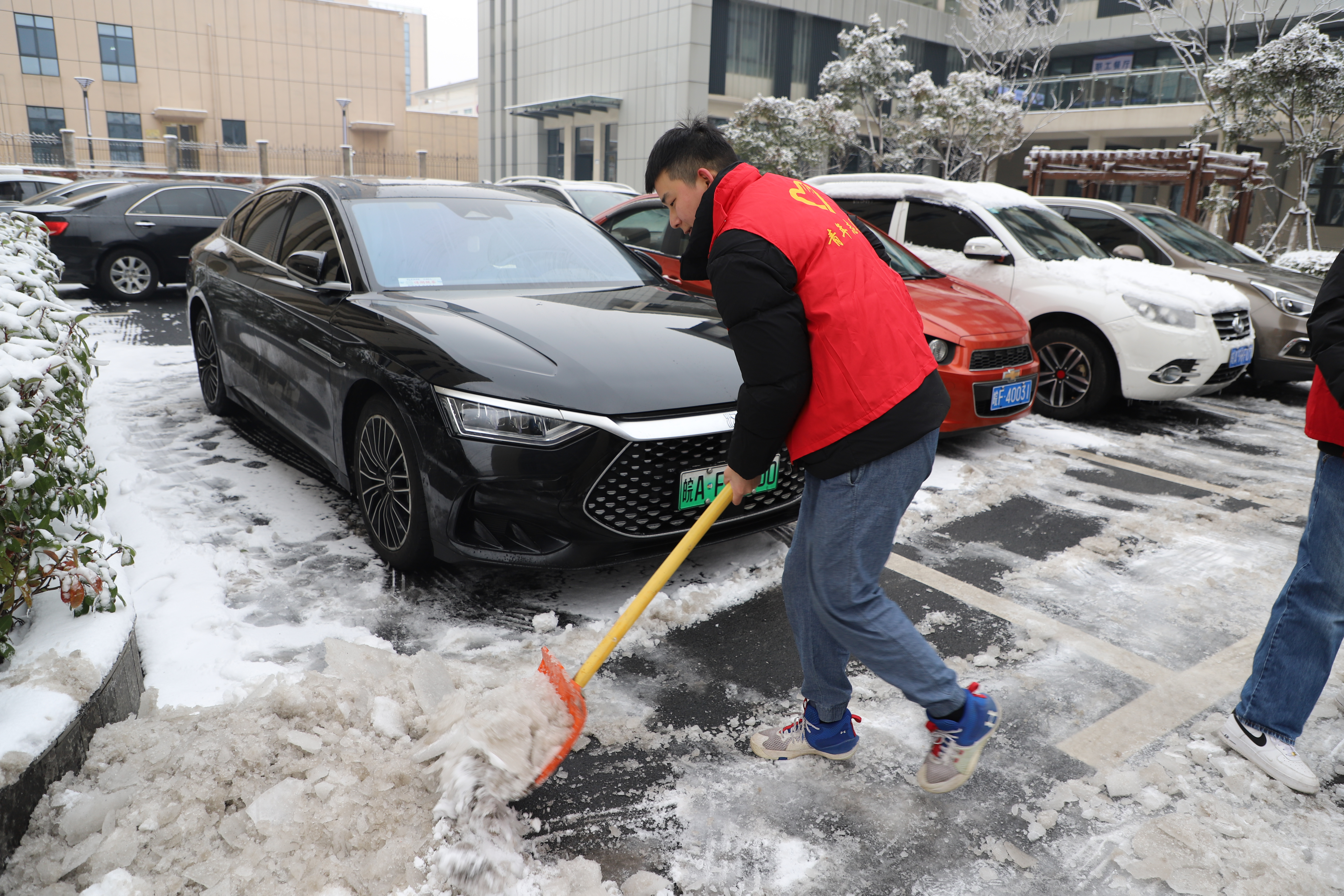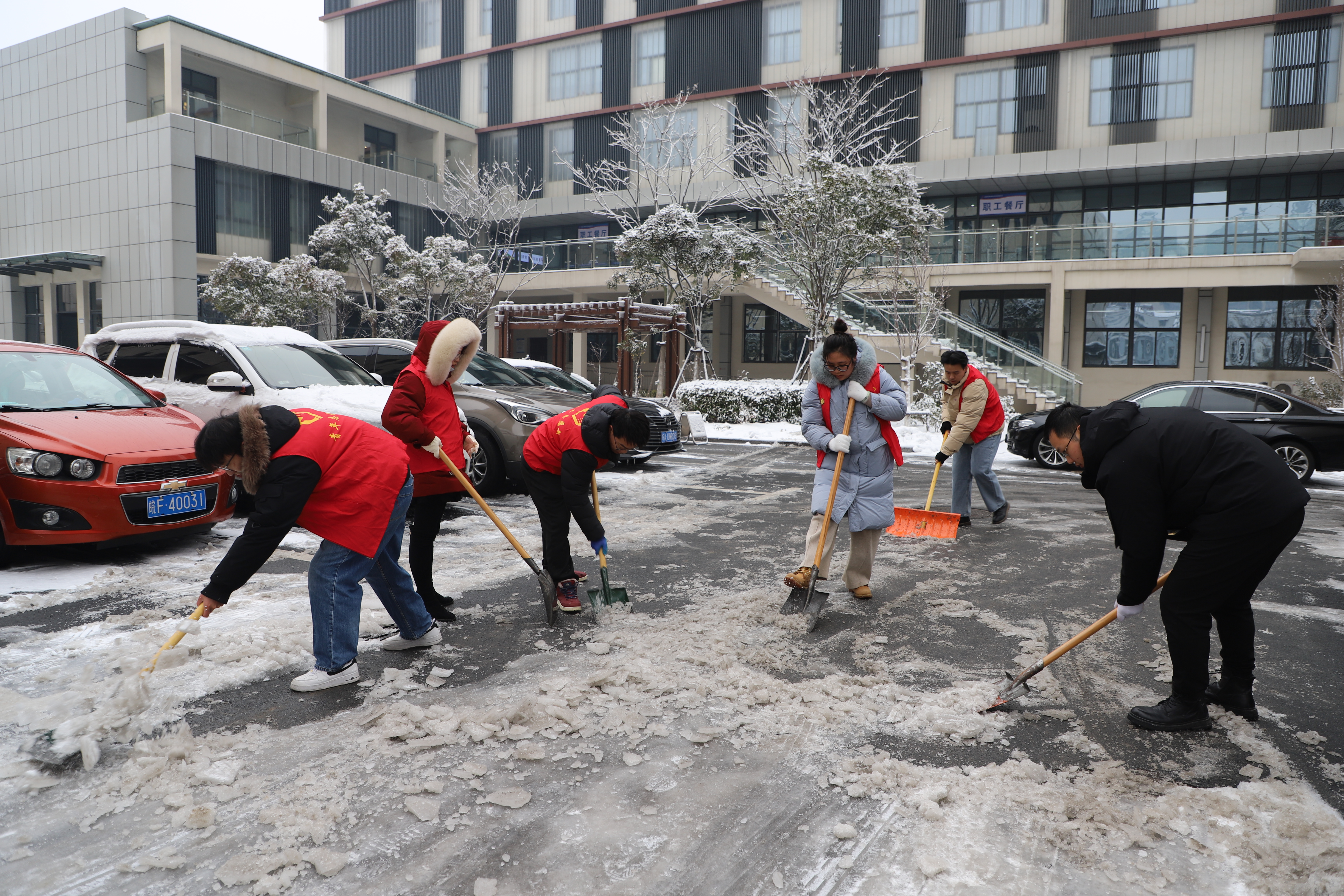一大早,青年突擊隊員們積極響應(yīng)團委號召,穿上“紅馬甲”,手持鐵鍬,化身掃冰除雪“排頭兵”。突擊隊員們除雪、鏟冰、清掃......協(xié)同工作、配合默契,對園區(qū)內(nèi)路口、人行道等重點區(qū)域的積雪、暗冰認真開展清理,經(jīng)過一上午的努力,清掃出一條“溫暖平安路”。