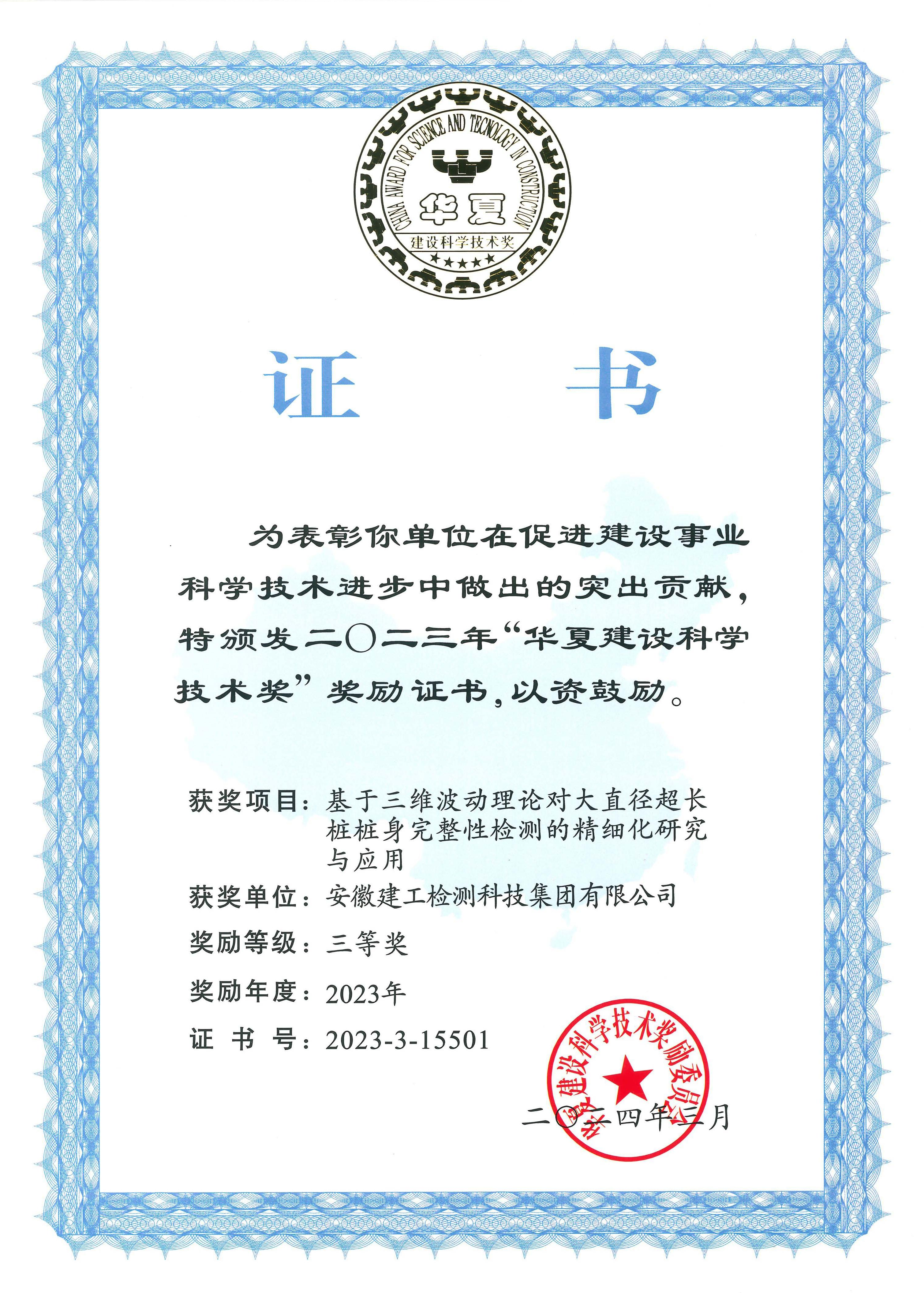 日前,華夏建設(shè)科學(xué)技術(shù)獎(jiǎng)勵(lì)委員會(huì)發(fā)布了“2023年度華夏建設(shè)科學(xué)技術(shù)獎(jiǎng)項(xiàng)目公告”,由建工檢測(cè)牽頭主持的《基于三維波動(dòng)理論對(duì)大直徑超長(zhǎng)樁樁身完整性檢測(cè)的精細(xì)化研究與應(yīng)用》項(xiàng)目榮獲“華夏建設(shè)科學(xué)技術(shù)獎(jiǎng)”三等獎(jiǎng)。華夏建設(shè)科學(xué)技術(shù)獎(jiǎng)是全國(guó)建設(shè)科技領(lǐng)域的最高獎(jiǎng)項(xiàng)之一,旨在獎(jiǎng)勵(lì)在建設(shè)行業(yè)中有重要貢獻(xiàn)的組織和人員,促進(jìn)科技成果向生產(chǎn)力轉(zhuǎn)化,全面提升行業(yè)綜合技術(shù)水平。