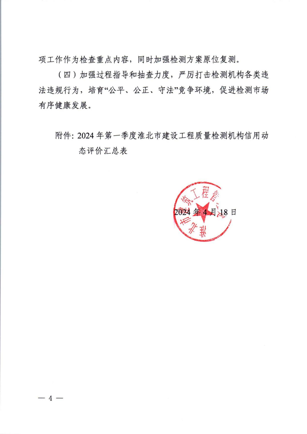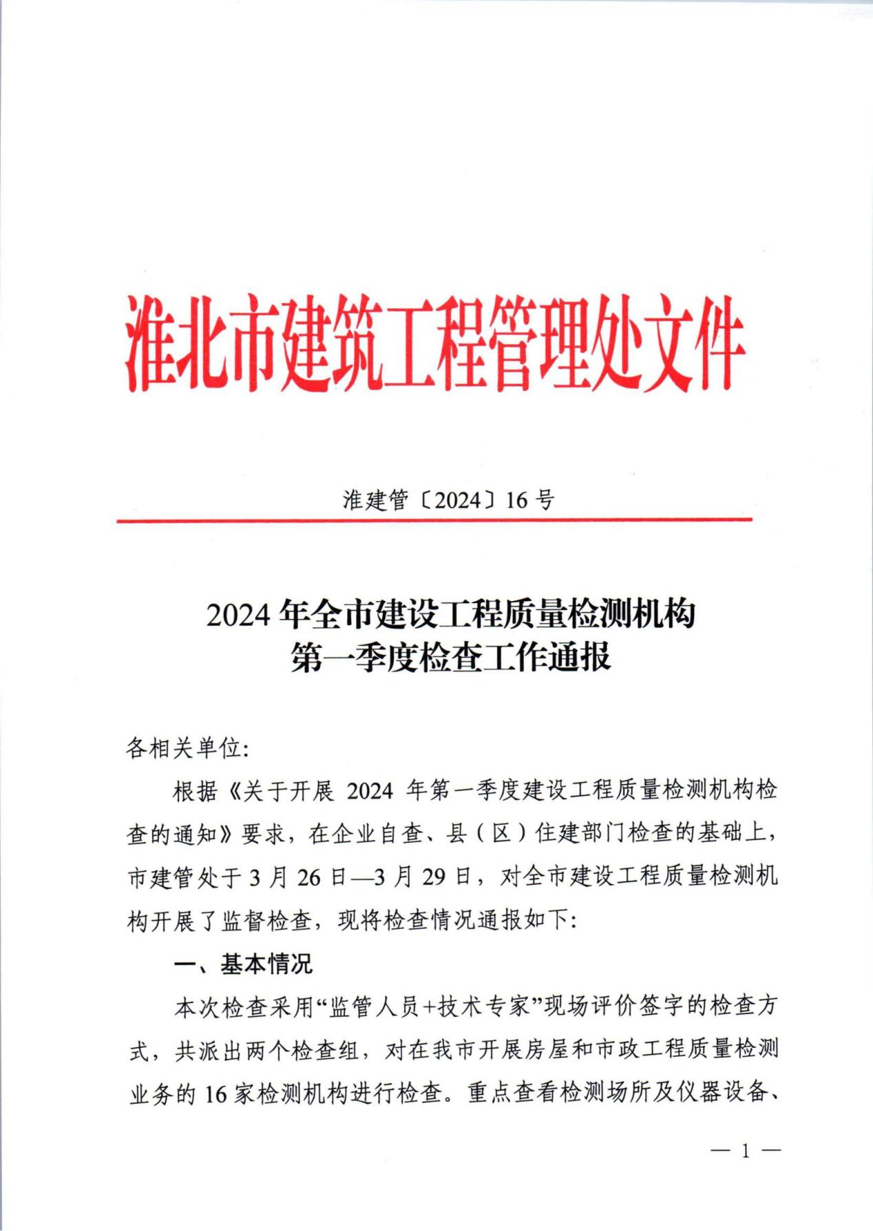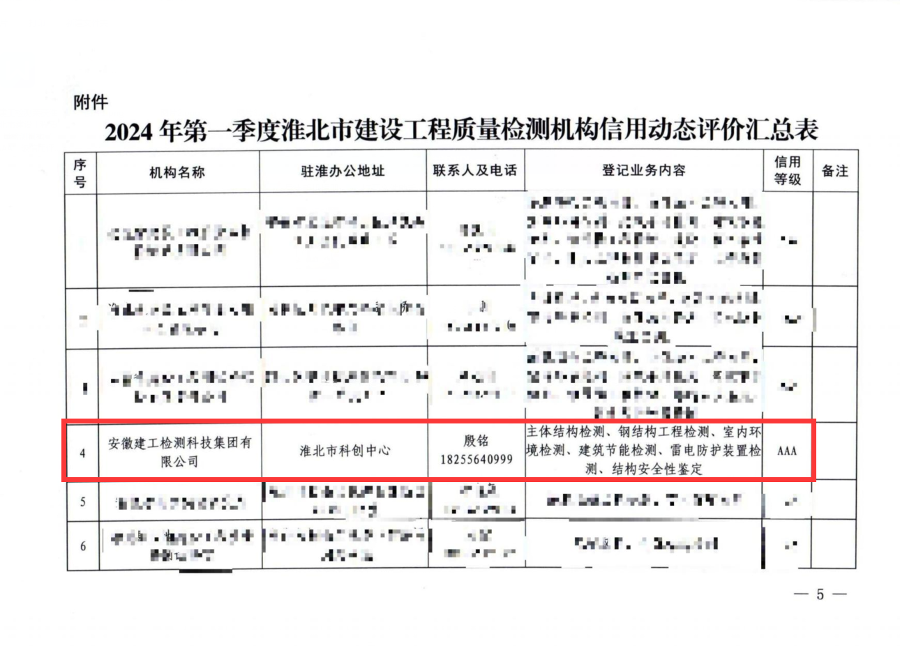 4月18日,淮北市住建局建設(shè)工程管理處公布了淮北市建設(shè)工程質(zhì)量檢測機構(gòu)第一季度監(jiān)督檢查結(jié)果,安徽建工檢測科技集團(tuán)獲得“AAA”級(最高等級)信用評價,這說明建工檢測在淮北的技術(shù)力量和檢測成績得到了主管部門高度的肯定和認(rèn)可。