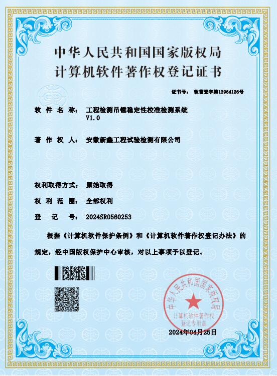 喜訊!安徽新鑫工程試驗(yàn)檢測有限公司喜獲5項(xiàng)軟件著作權(quán)