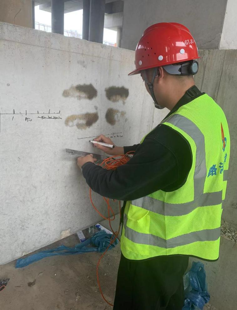 范春生,路港通檢測外檢事業(yè)部檢測員,正在對一項(xiàng)目的混凝土結(jié)構(gòu)進(jìn)行裂縫深度的檢測?;炷两Y(jié)構(gòu)的裂縫是結(jié)構(gòu)問題中最常見的。深度是評估其安全性的重要指標(biāo)之一。掌握混凝土測裂縫深度的方法和意義,可以幫助大家更好地了解混凝土結(jié)構(gòu)的安全性,及時(shí)發(fā)現(xiàn)結(jié)構(gòu)裂縫問題,采取相應(yīng)的措施進(jìn)行修復(fù)和加固,有效預(yù)防結(jié)構(gòu)事故的發(fā)生。