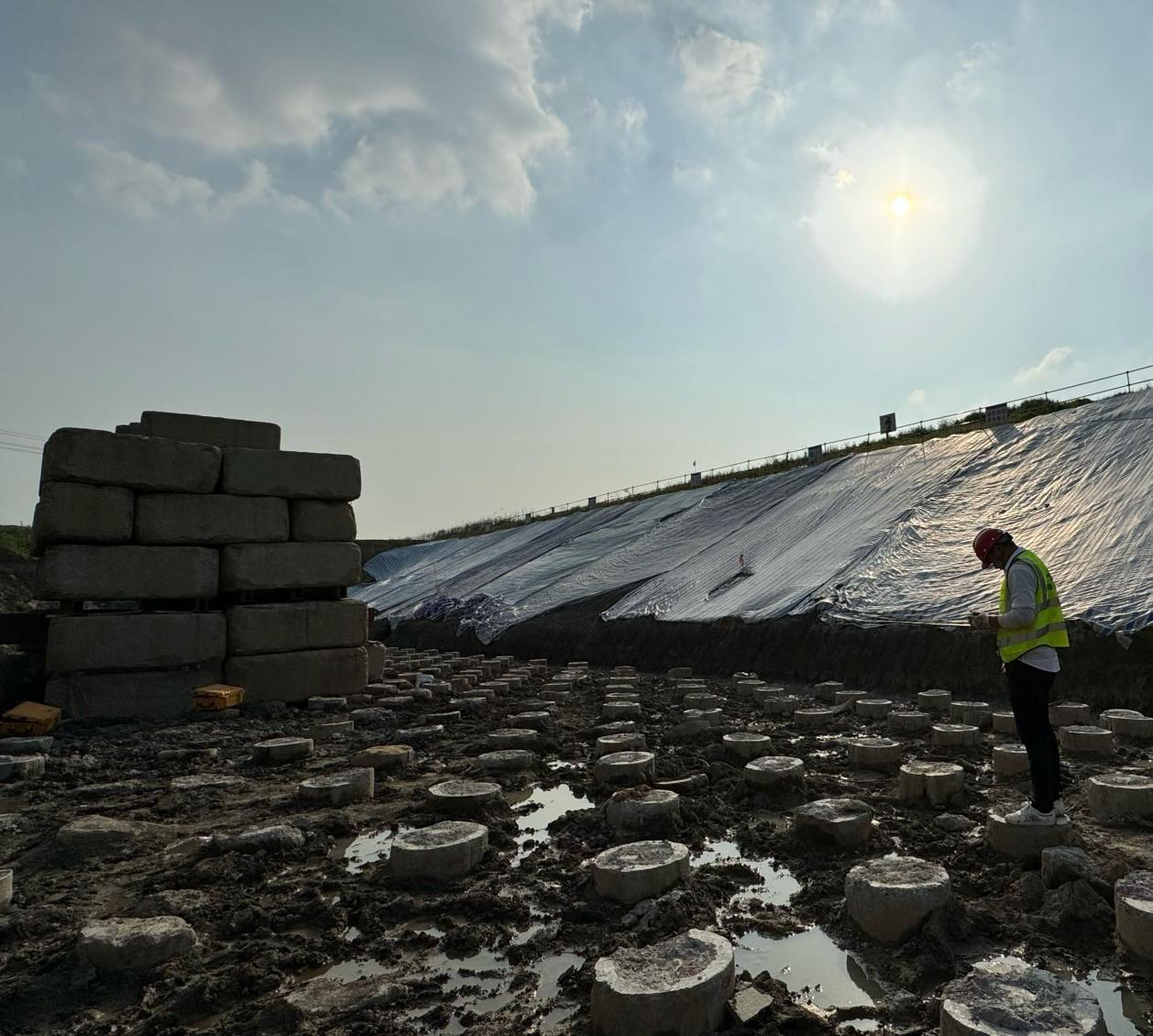 陶海飛,路港通檢測事業(yè)部副部長,近日在合肥東航碼頭開展CFG樁單樁豎向承載力靜載試驗(yàn)。試驗(yàn)采用了100噸位配重反力系統(tǒng),并按照行業(yè)標(biāo)準(zhǔn)進(jìn)行了分級加載。為項(xiàng)目施工提供有效依據(jù),進(jìn)一步提高了該項(xiàng)目的工程質(zhì)量水平。