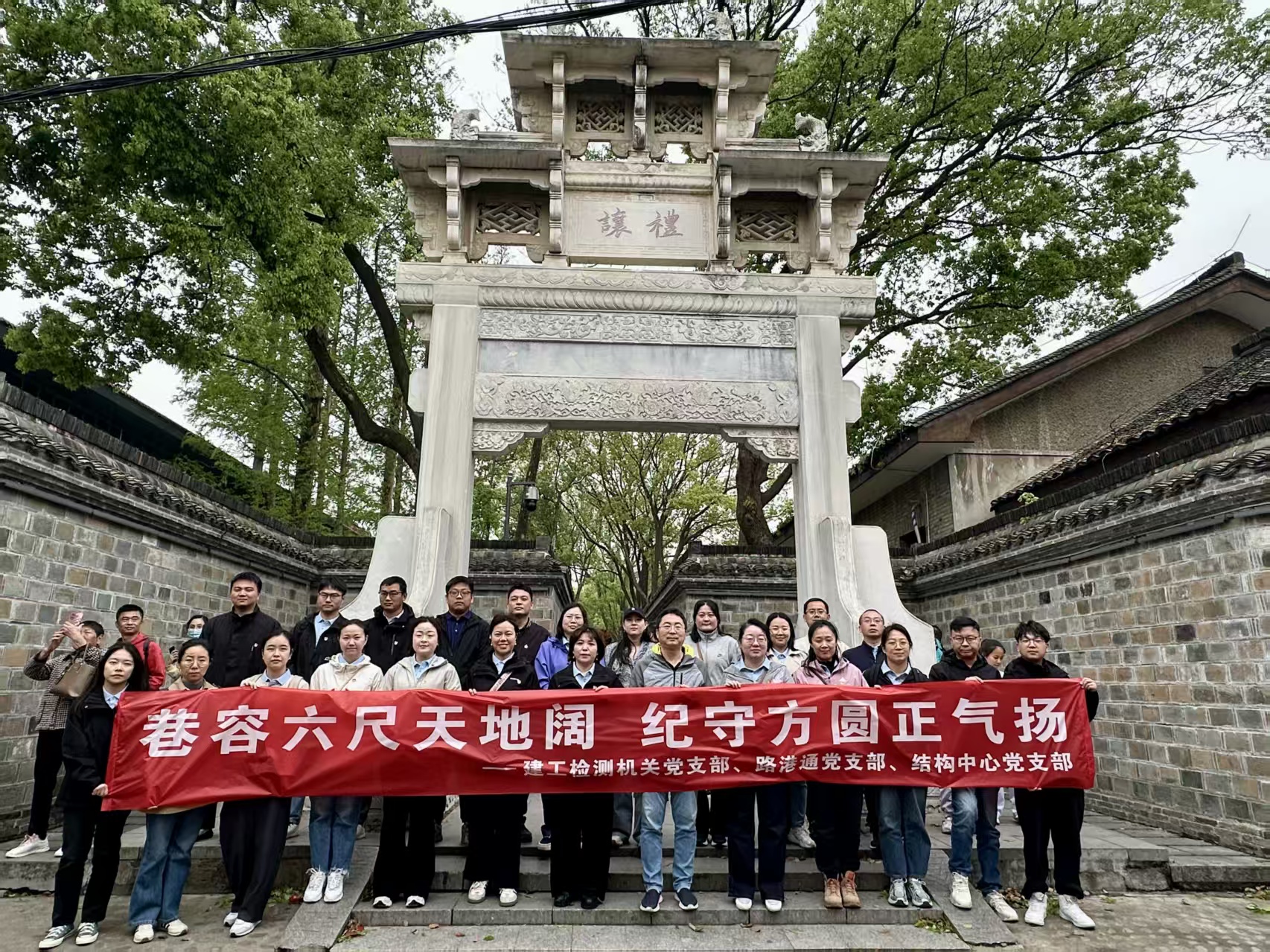 為深入學(xué)習(xí)貫徹習(xí)近平總書記考察安徽重要講話精神,深化黨員干部黨性教育,在全黨開展深入貫徹中央八項規(guī)定精神學(xué)習(xí)教育之際,4月12日上午,建工檢測機(jī)關(guān)黨支部、路港通黨支部、結(jié)構(gòu)中心黨支部組織黨員、民主黨派人士等前往桐城六尺巷開展“巷容六尺天地闊 紀(jì)守方圓正氣揚”黨建聯(lián)建活動。