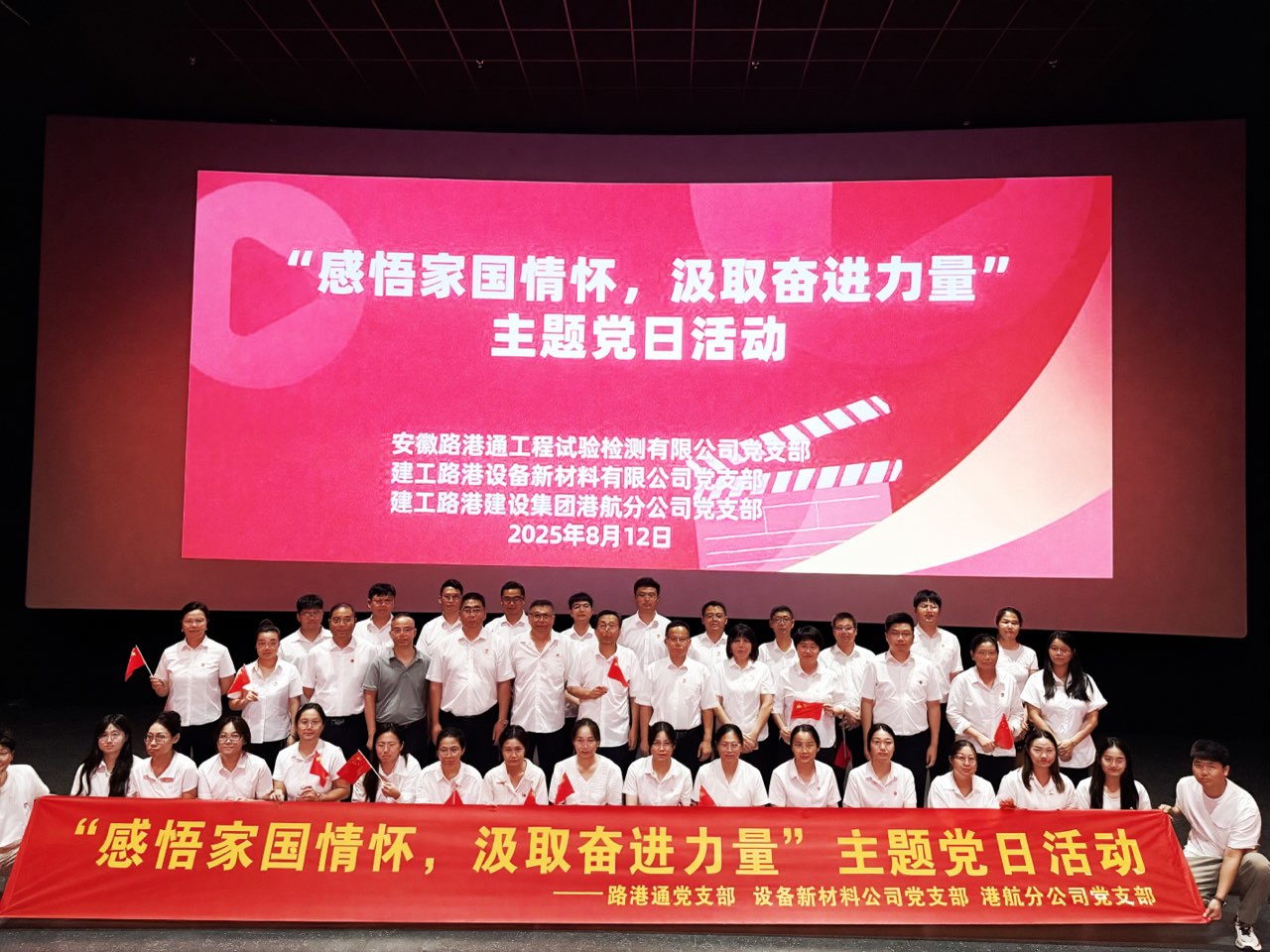 8月12日,路港通檢測黨支部聯(lián)合建工路港所屬單位黨組織開展“感悟家國情懷 汲取奮進力量”主題黨日活動,共同觀看愛國主義題材影片《南京照相館》。