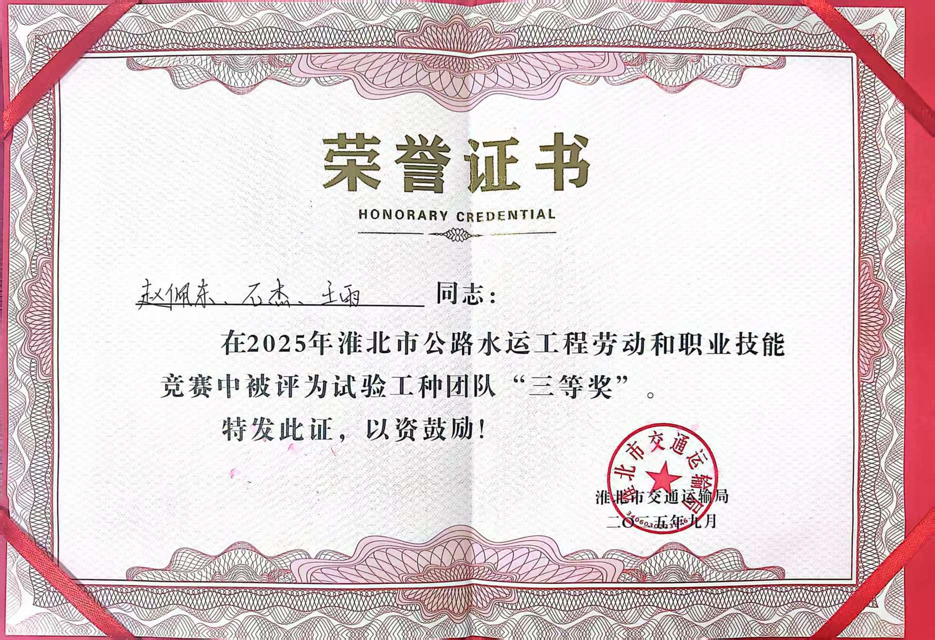 喜報(bào)!路港通公司在2025年淮北市公路水運(yùn)工程勞動(dòng)和職業(yè)技能競(jìng)賽中斬獲佳績(jī)