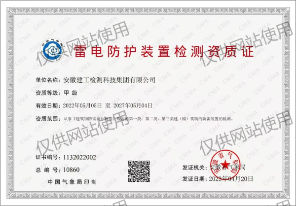 雷電防護(hù)裝置檢測(cè)資質(zhì)證書(shū)