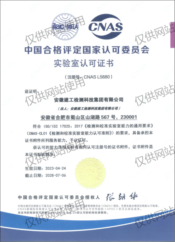 中國合格評定國家認可委員會CNAS認可證書