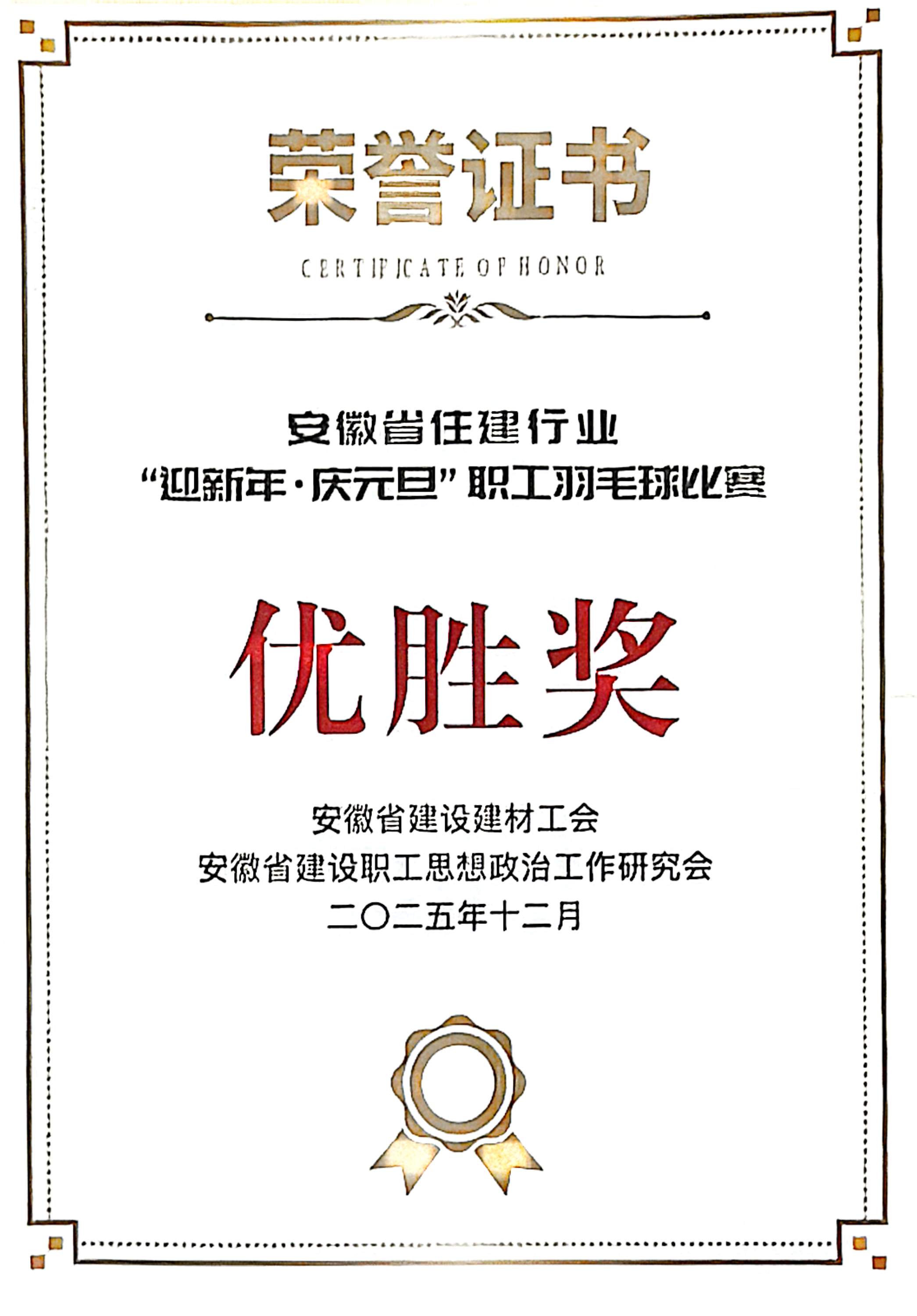 喜報(bào)!公司職工在安徽省住建行業(yè)“迎新年·慶元旦”職工羽毛球比賽中榮獲優(yōu)勝獎(jiǎng)